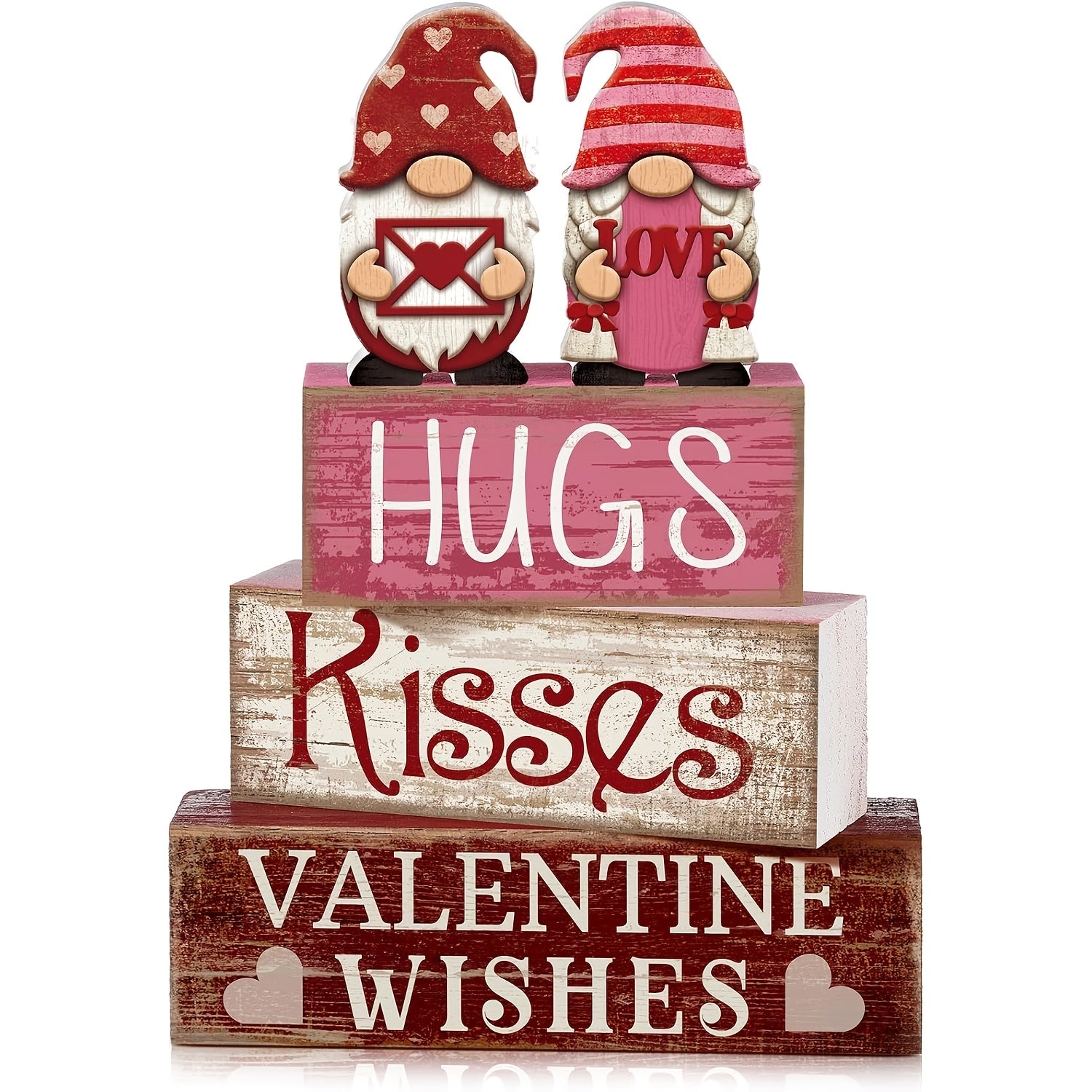 Celebrate love and seasonal charm with this delightful Valentine's Day gnome tray decor. Made from high-quality manufactured wood and styled in red, white, and pink, it brings a whimsical farmhouse touch to your home. Perfect for tiered trays, coffee bars, mantels, entryways, or bookshelves, this piece is a lovely accent for spring, summer, or holiday gifting.