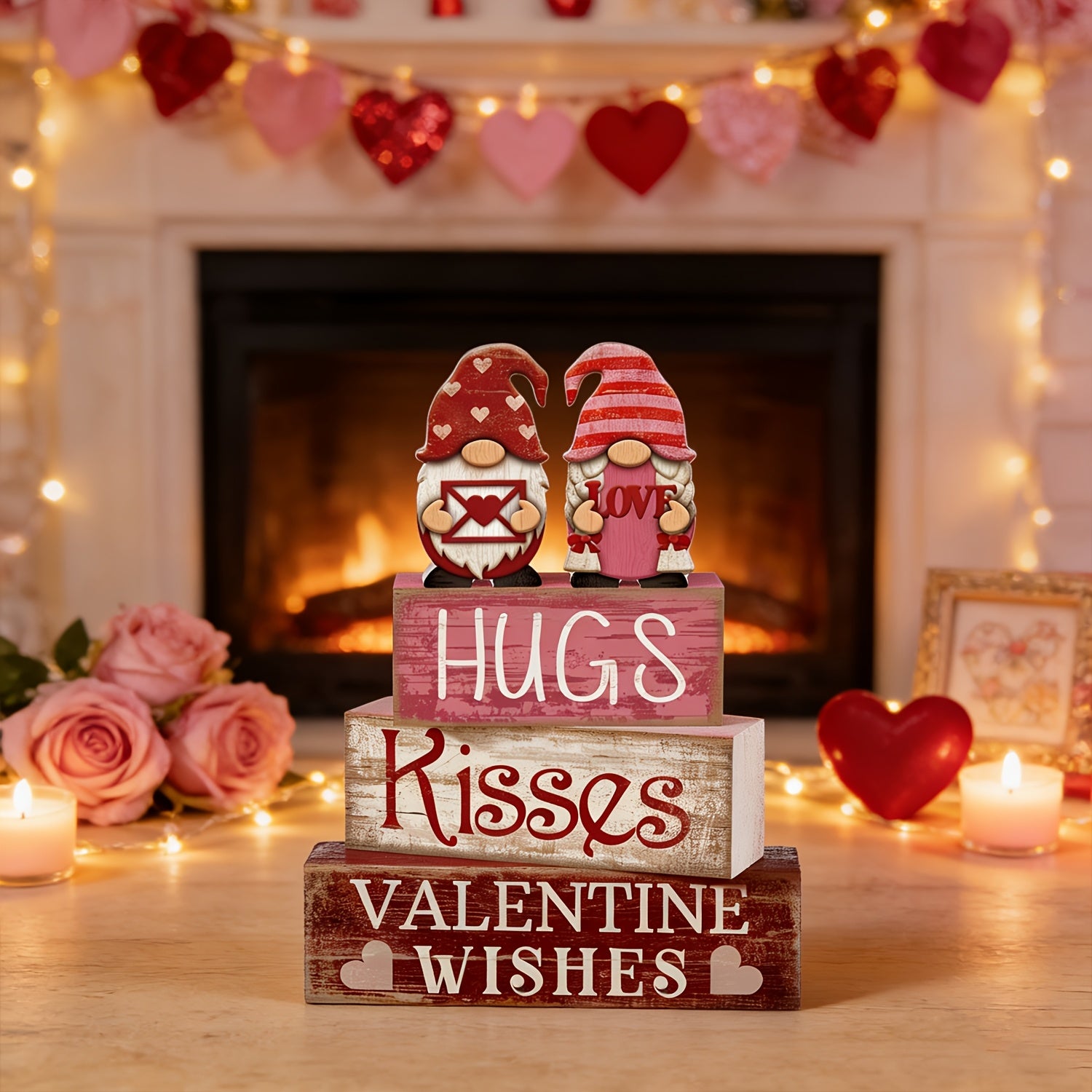 Durable wooden design in classic Valentine's Day colors